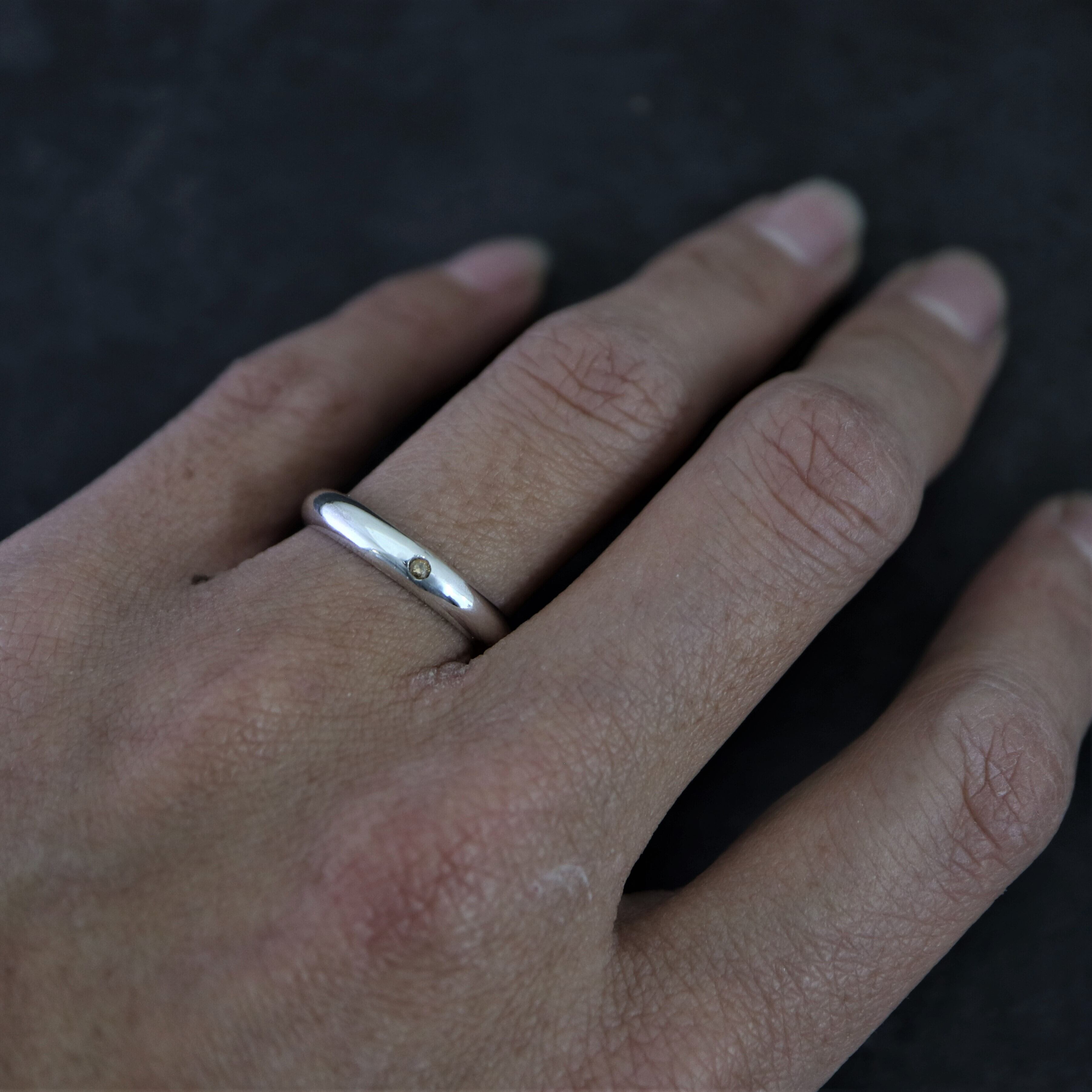 シンプルな甲丸リングに1粒のストーンを埋め込みました。